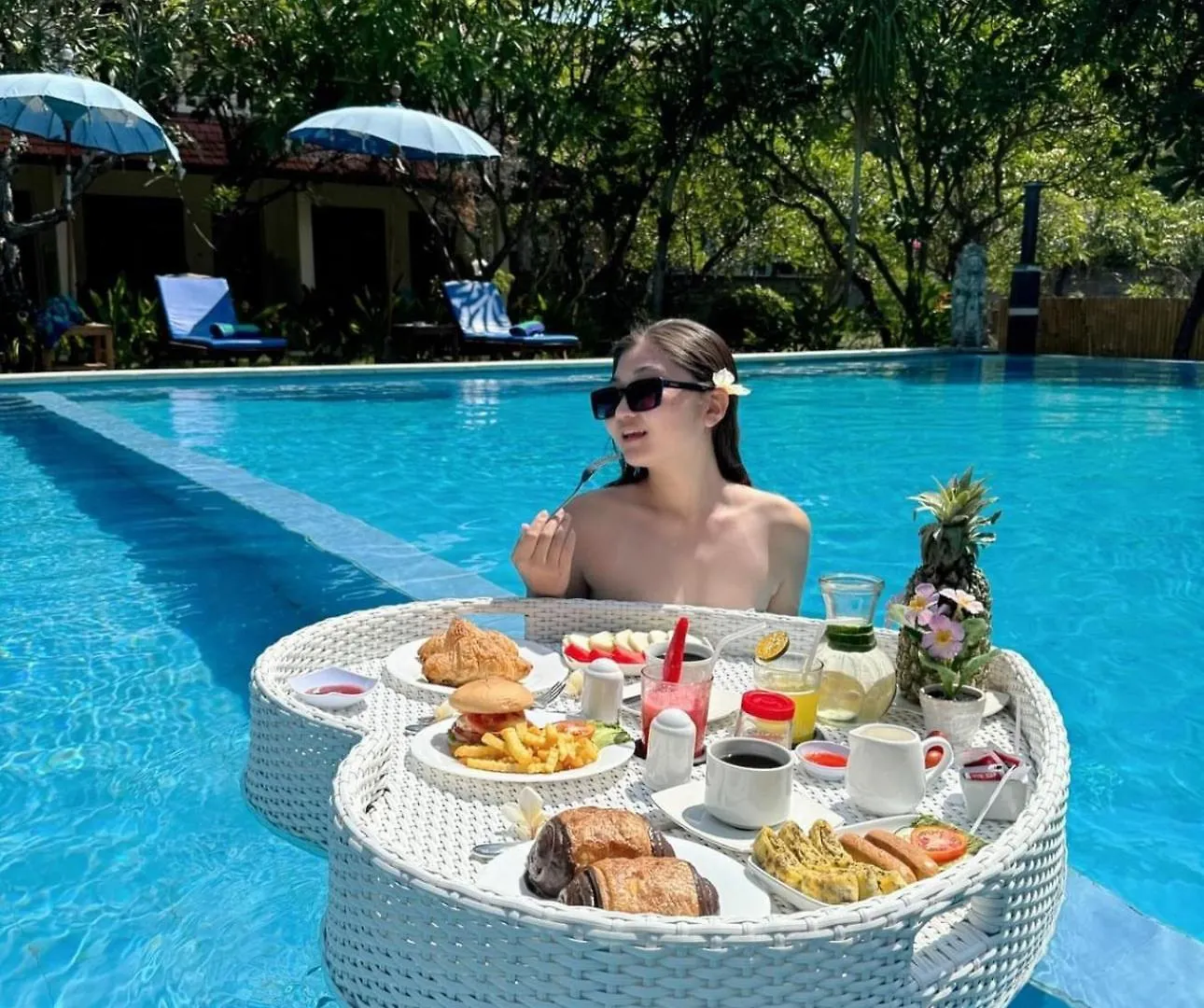 Il bed & breakfast offre una colazione americana tutti i giorni. Durante il soggiorno presso il New Mekar Jaya Hotel, gli ospiti possono scegliere tra i punti di ristoro nelle vicinanze, come il ristorante Rice Paddy Cafe, a circa 5 minuti a piedi, o il ristorante WANA Restaurant Lounge Bar, a 5 minuti a piedi.